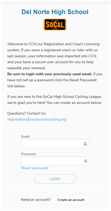 If you are a new coach - welcome! Create an account with CCN to continue. - Select who you are registering and click the blue Register button.