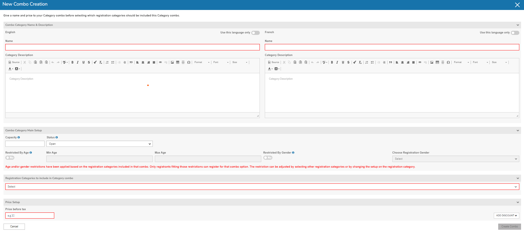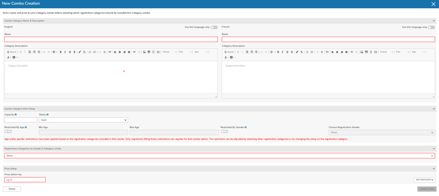 If an event has a Max. capacity set, we need to know and set the max. capacity on each individual registration category and the overall registration process Max. cap has to stay with NO cap.