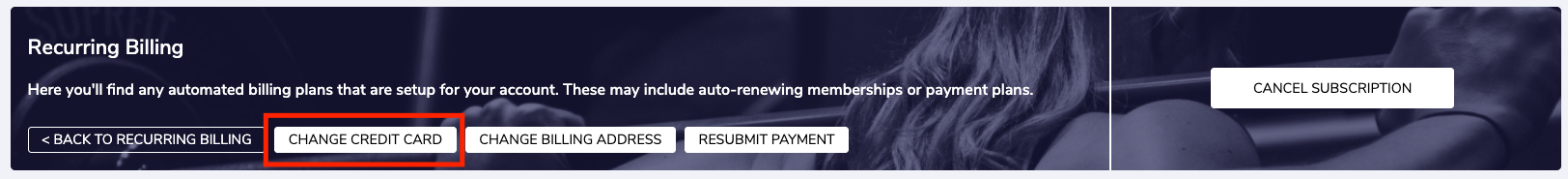 4. To update your credit card information, click on change credit card