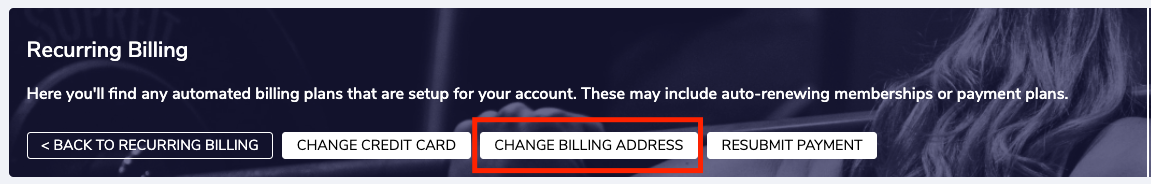 3. Make sure your BILLING ADDRESS is up to date (the address must be the address linked to the credit card you want to use for your payment) - if not, please update it using the change billing address button: