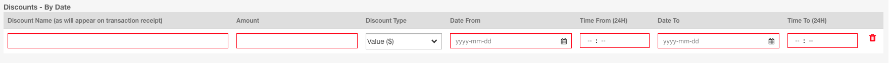 - Amount: In dollars or in percentage depending of what you select on the discount type