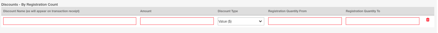 By Registration Quantity: These discounts are normally reserved for series registrations, but can be for registrations that have multiple dates that allow participation. Normally Interpodia uses these for a 'class structure' that wants a discount for registering for more than one session.