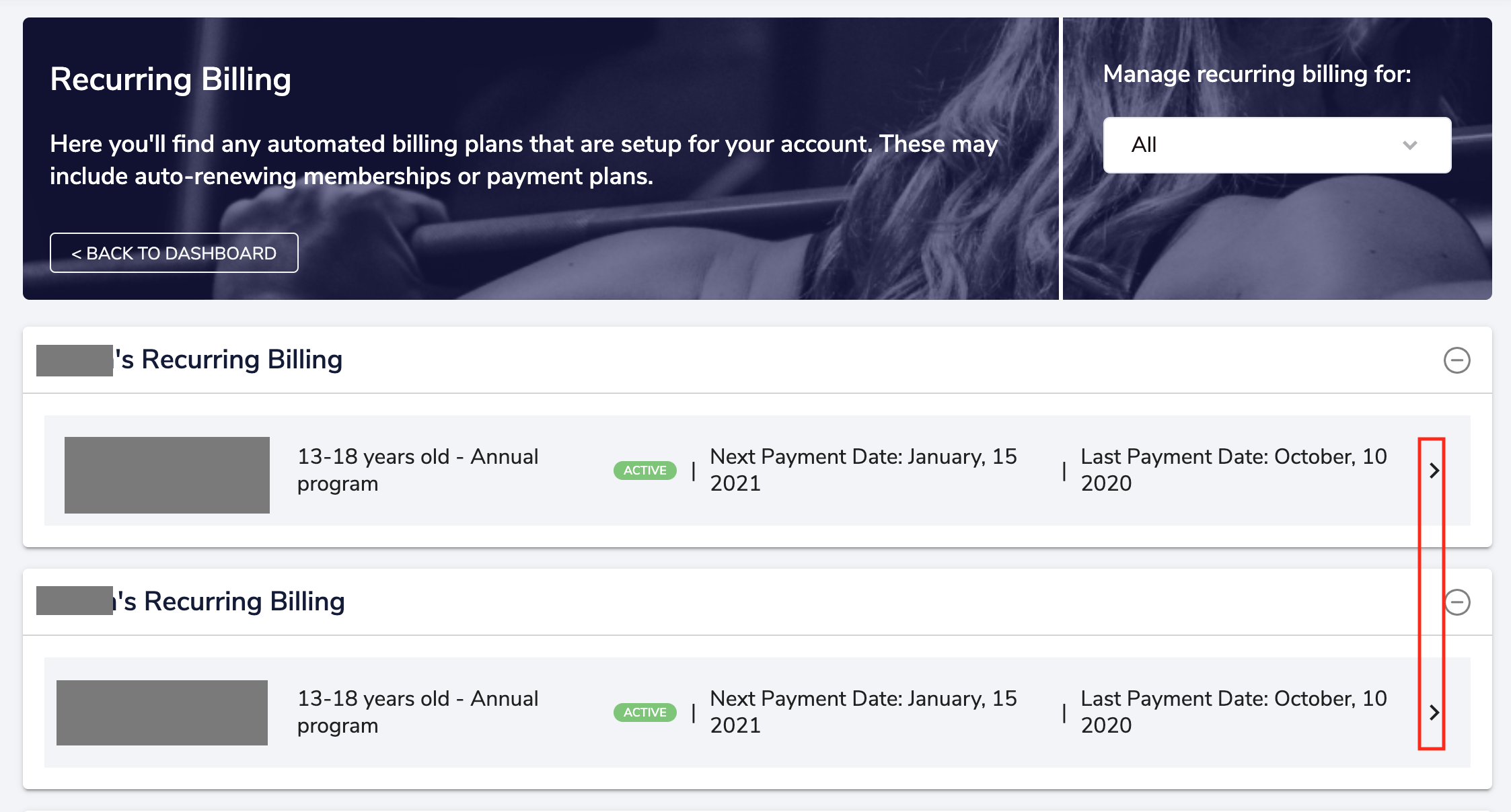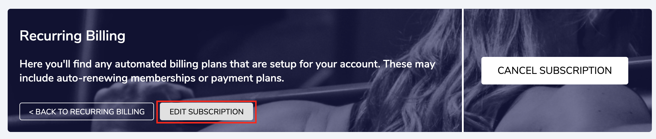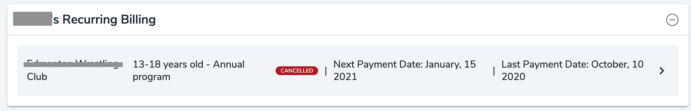 If you've registered for a club/membership or activity with a recurring billing option on it, you'll find the details of your subscription as below: