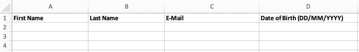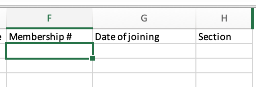- If the column title is in bold, it means that the information is required. This means that if you do not provide this information, the system will not be able to create the membership.