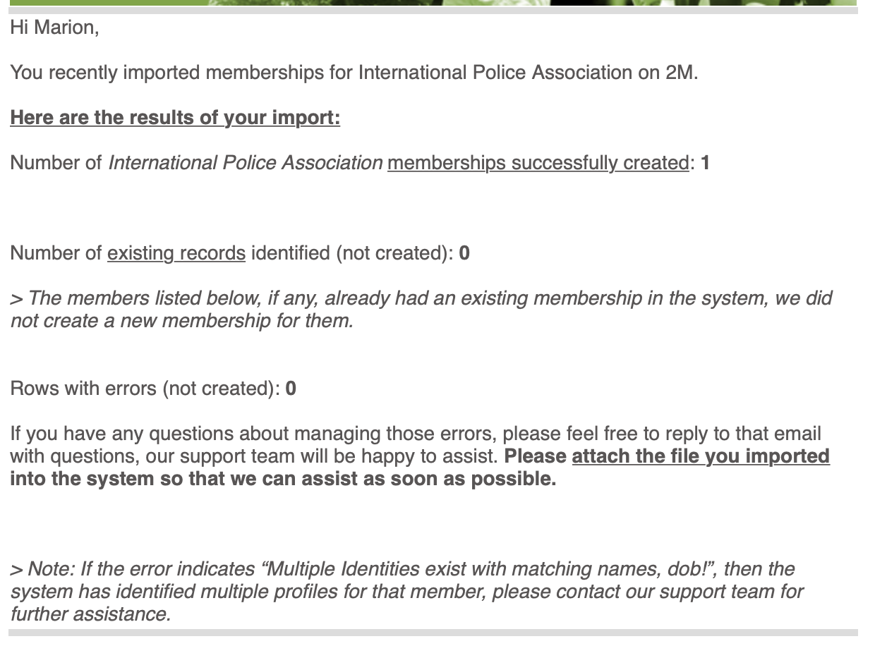 9- Once you initiate the import process, the system will start importing the memberships. Once the import is completed, you will receive an email with the results. Additionally, all the members who were successfully imported will receive a confirmation email.