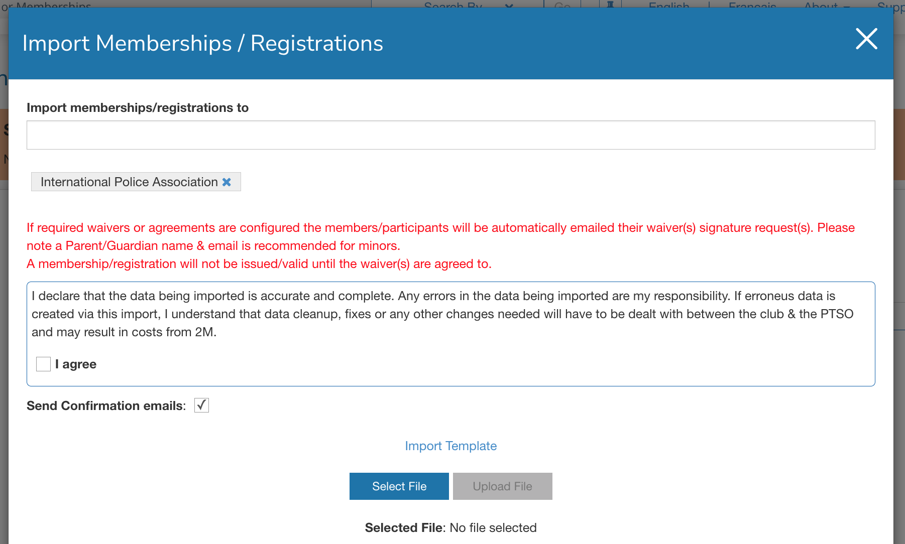 2- When you click on the "Import Memberships" button, a pop-up window will appear:
