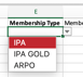 The Membership Type column should be filled in using the provided drop-down options, which are already filled out for you (these cells have data validation). If you have your own file, you can copy and paste the content into the column, as long as it matches exactly.