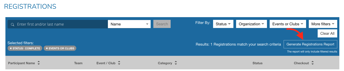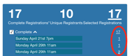 - To access your list of registrants per date, access the home page. And click on the number of registrant for the specific date you'd like to pull the list for. This will open the list of registrations in the REGISTRATIONS menu, from where you can generate a registration report