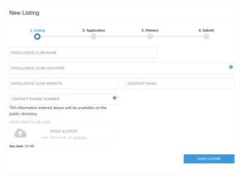 Then club needs to enter their base information here:
