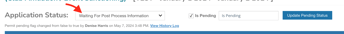 By default, the application will be in an 'waiting for approval' status. When the club is ready to proceed, you'll update their application to 'waiting for post process information':