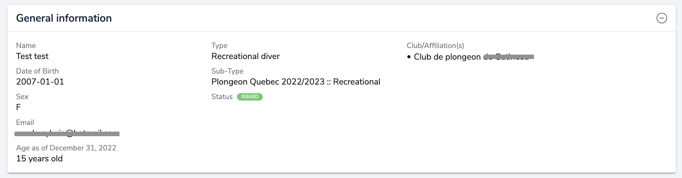 4- To update your membership information, you need to open your PSO membership details (Plongeon Quebec in the example above) which include: