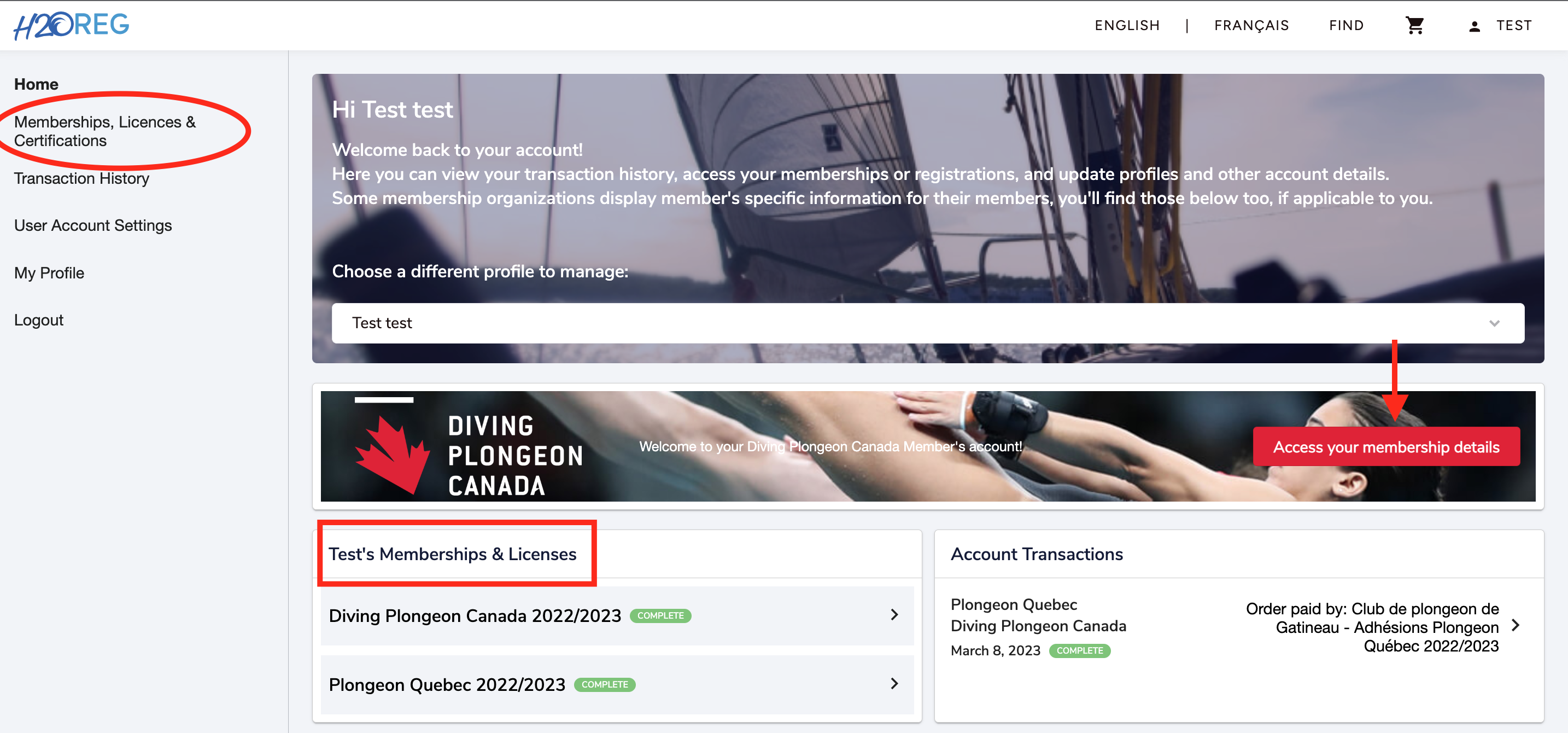 You will then access your member account home page, from there you can access your membership list and past transactions - You can access your full list of memberships from: