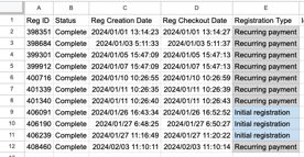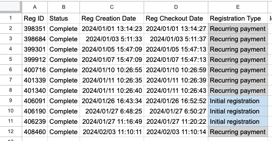 - Registration Type: allowing you to easily identify "Initial Registration' vs 'Recurring Payment'