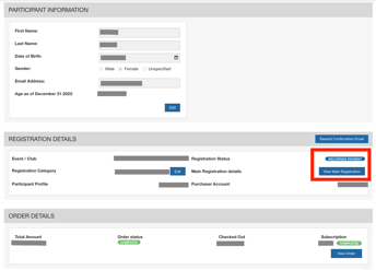 On the other hand, recurring registrations solely focus on payment-related details like member/participant names and order specifics, with a convenient link provided to access the main registration for comprehensive information.