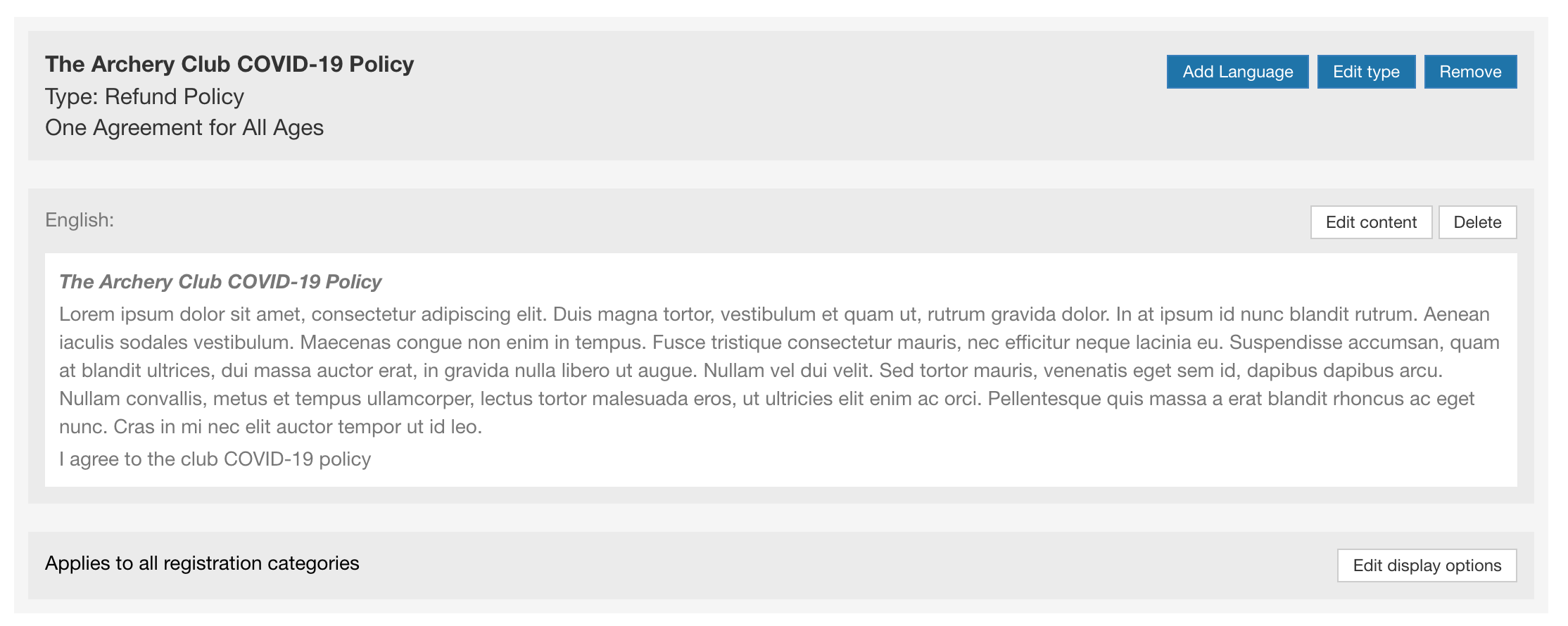 The checkbox content is a sentence or a paragraph you want registrants to click on as proof they read it and agree to it. It will look like that for the registrant upon reading and signing the document. For example "I agree to the terms of the document".