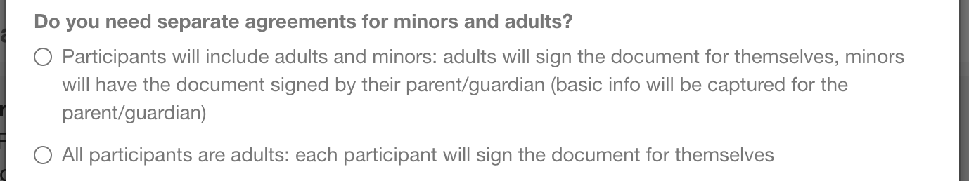 5. If you've chosen the "each participant" option, you need to select whether or not you'll need to create a minor version of your document.