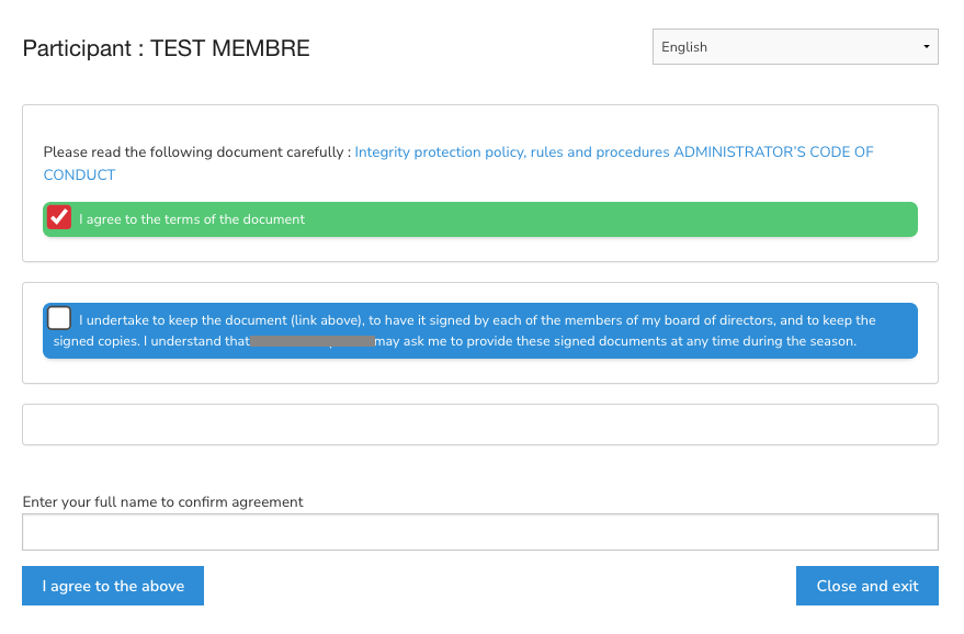 3. Enter the document name (this name is the admin name displaying on your event/club dashboard)