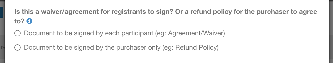 Waivers are the release of liability, media consent, or any other legally binding document that you would require your registrants to agree to. These are shown before a person reaches the cart page to complete a purchase.