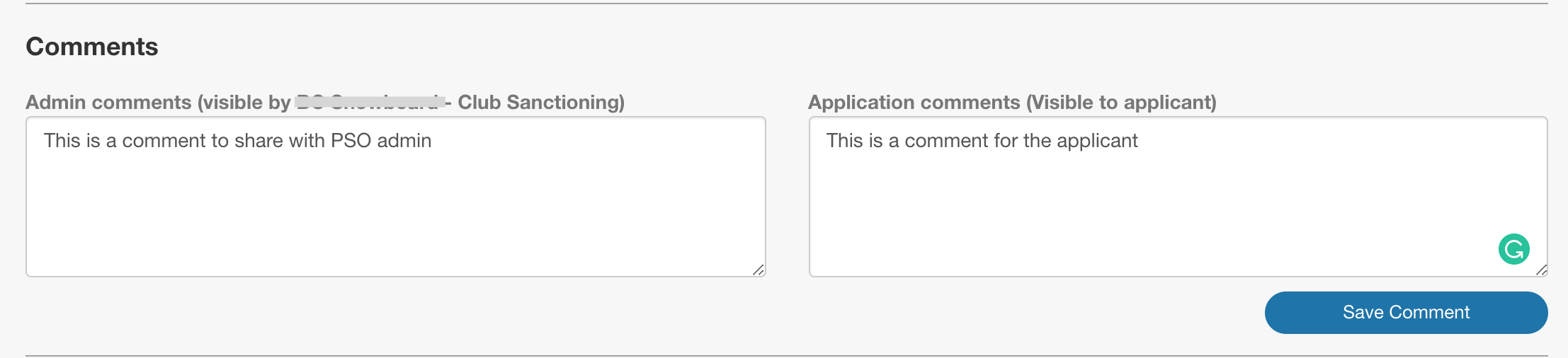 - Add comment for internal purposes, or to update the applicant