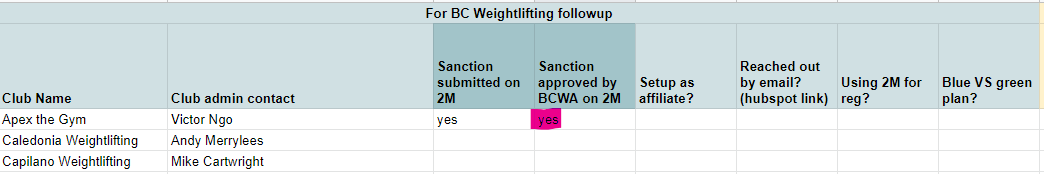 1- Refer to this SHARED DOC each time you approve a new club, denote it in the Sanction approved by BCWA on 2M column :