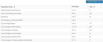 4. From here you can see all the different clubs your members are affiliated with. You can also download a report by clicking the "Download Affiliates Report" button.