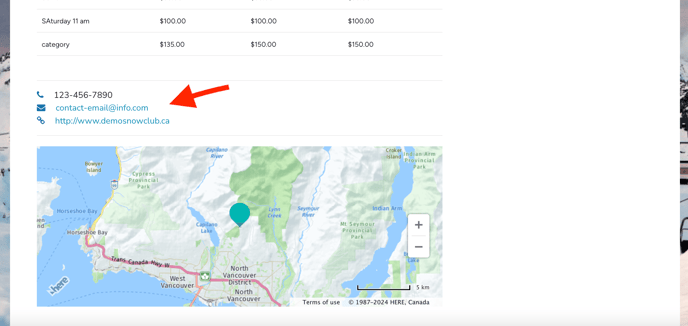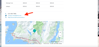 These details will be available on the club's homepage to allow your members or participants to easily contact you if needed (see example below)