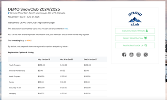 To use SnowReg and directly receive fees associated with your programs, setting up a payment processor account is mandatory. Please contact info@snowreg.com for more information.