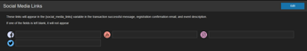 - Go to the Social Media Links section and add the links to your organization's social media (they will appear below the registration button on the homepage).