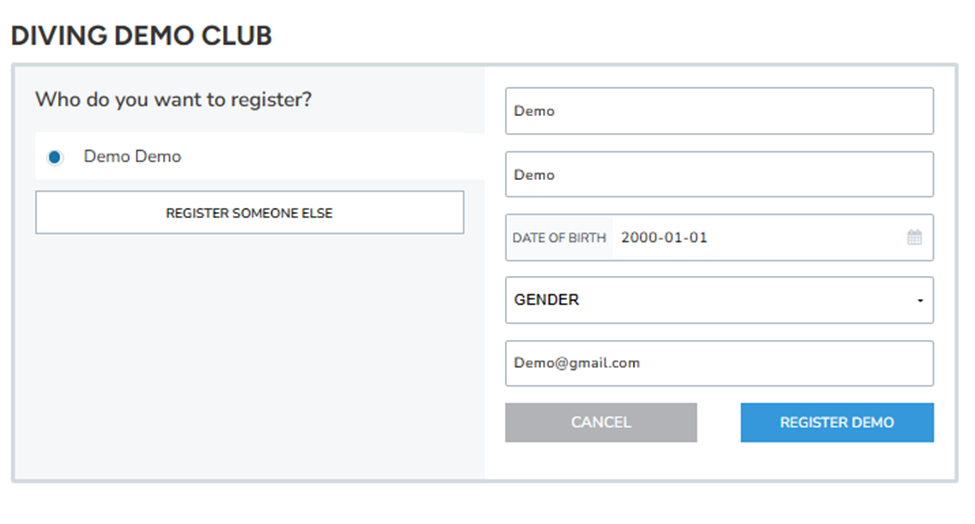 If you want to register someone other than yourself (for example, your children), simply click on "Register someone else" and enter their information.