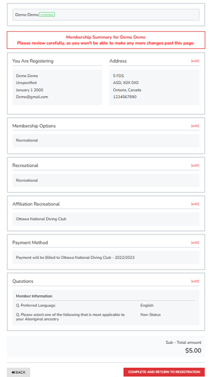 9.Please confirm all the information you have entered, then press "Complete and return to your registration".