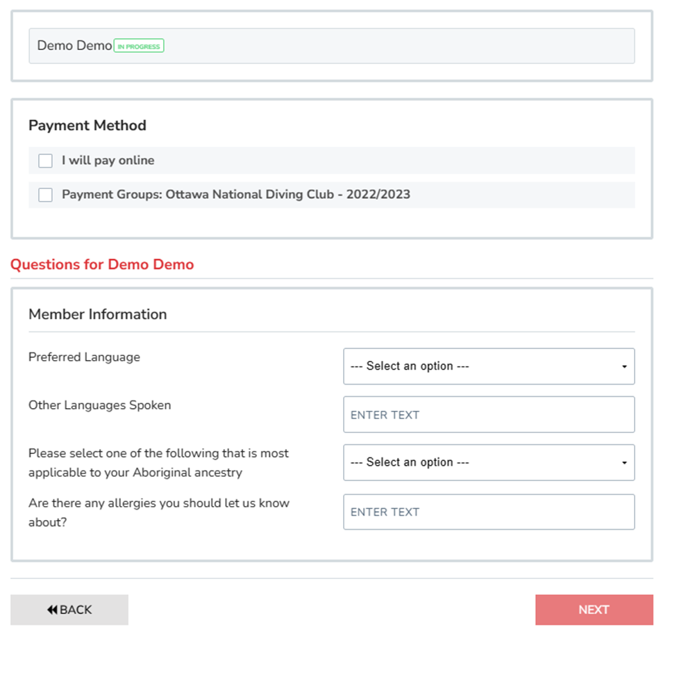 Please note that the screen shown may vary if you are registering for competitive programs compared to recreative ones.