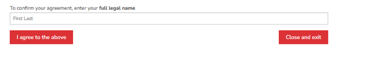 15. Please check all the blue boxes (signifying your agreement) for each statement and virtually sign with your full name.