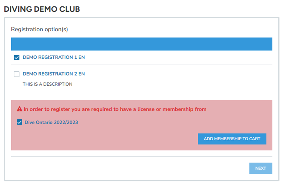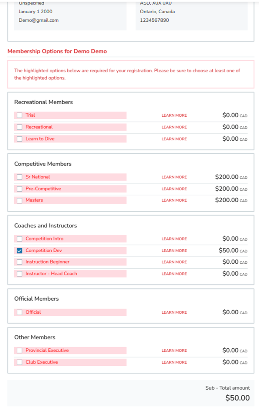 For some programs, you will need to join your Provincial Sports Organization (and sometimes National). If this is the case, a red box will appear.