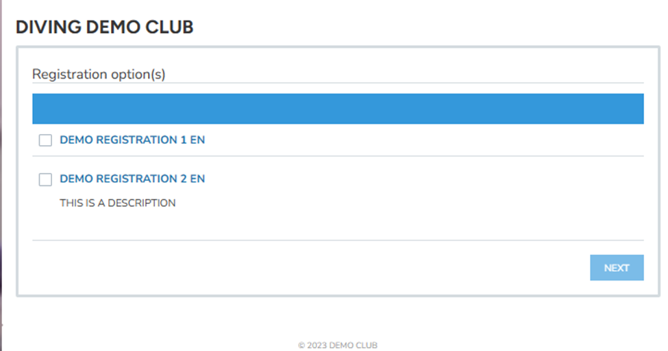 Note: If the club's registration option you choose allows only one type of membership, this option will be automatically chosen for you.