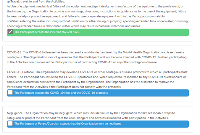6.This page will allow you to select the type of activities you want for your membership. To select, check the desired option.