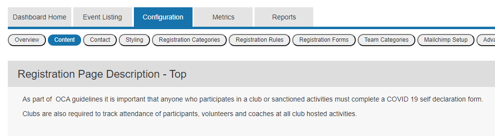To update or add this content, go to your event dashboard -> registration configuration -> content and edit the "registration page description - top":