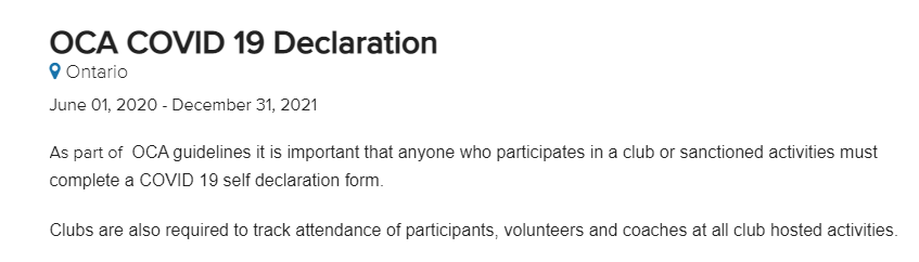 As part of OCA guidelines, it is important that anyone who participates in a club or sanctioned activities must complete a COVID 19 self-declaration form.