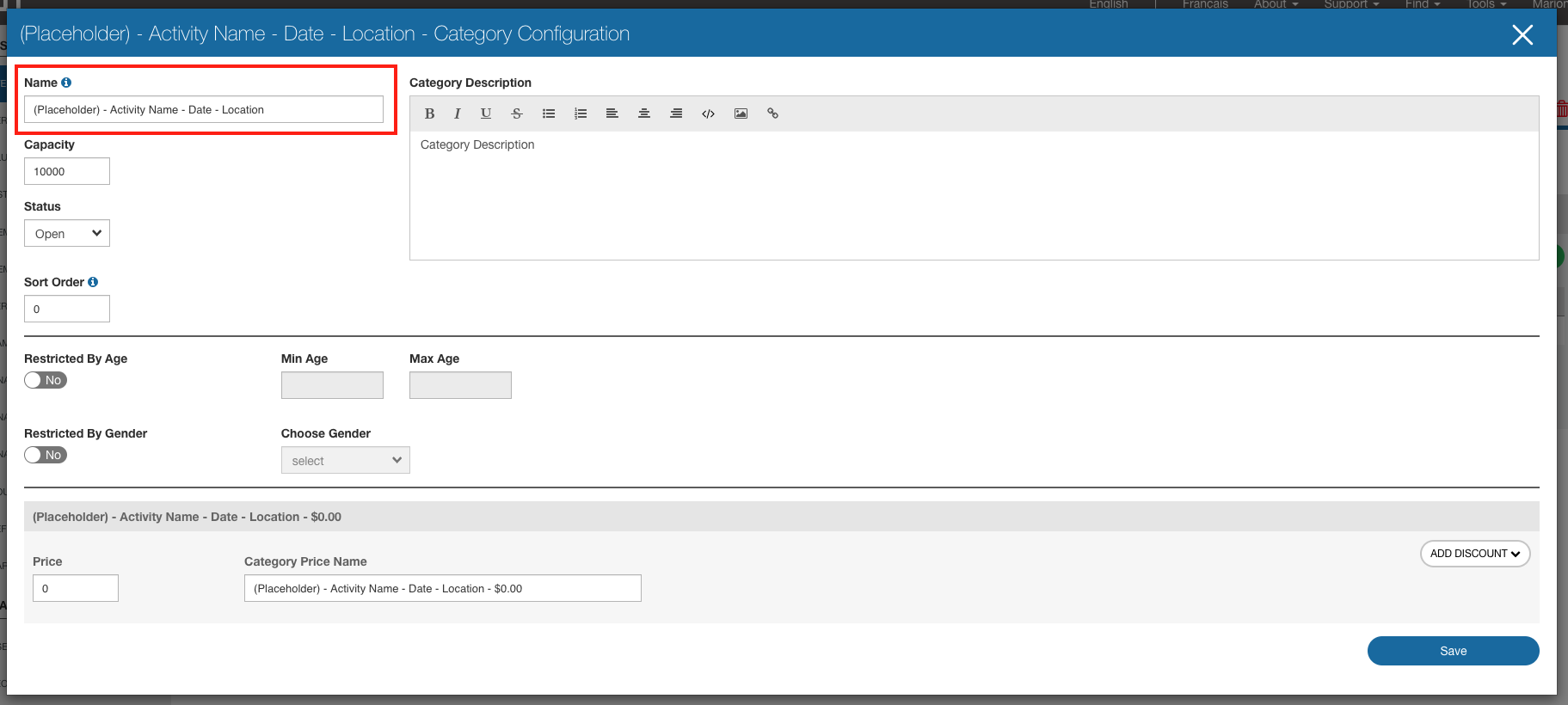 For each new activity that you will be offering, you need to create a new registration category as follow: