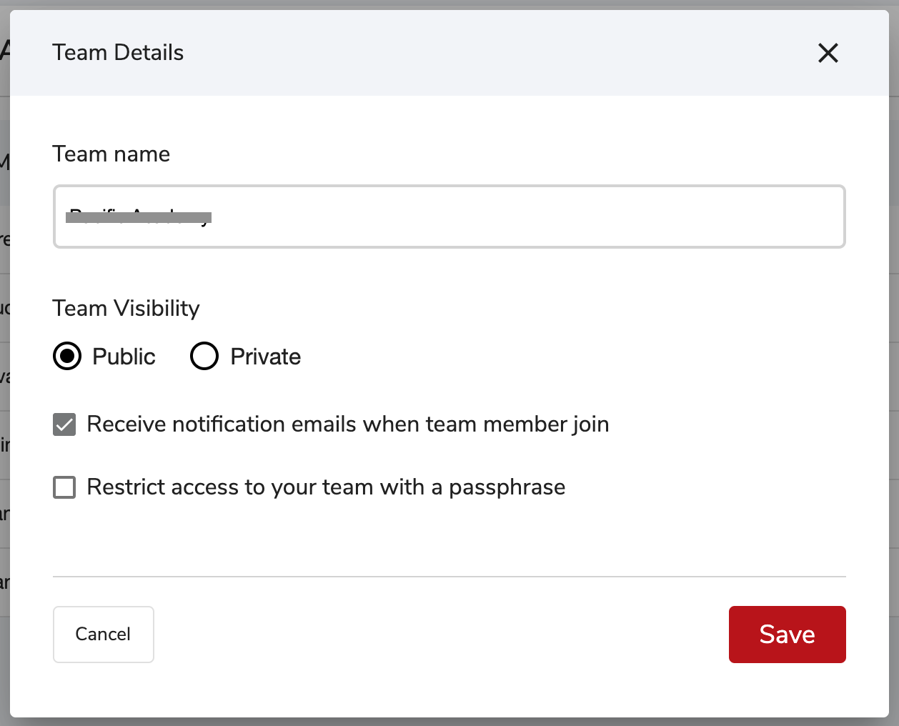 - Click on "manage team" to edit team name and setup