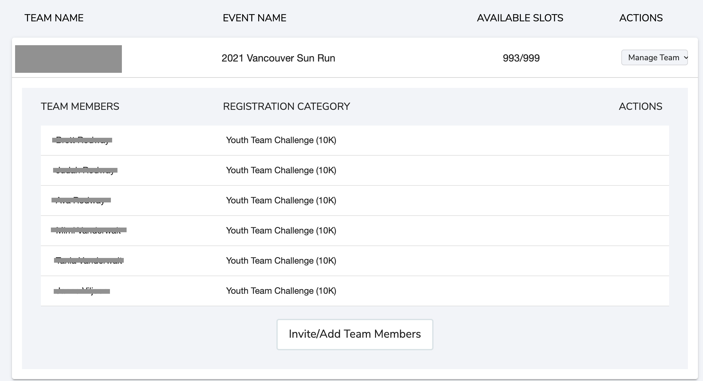 If you have created a team, as a team captain you'll have access to manage your team details and registrations.