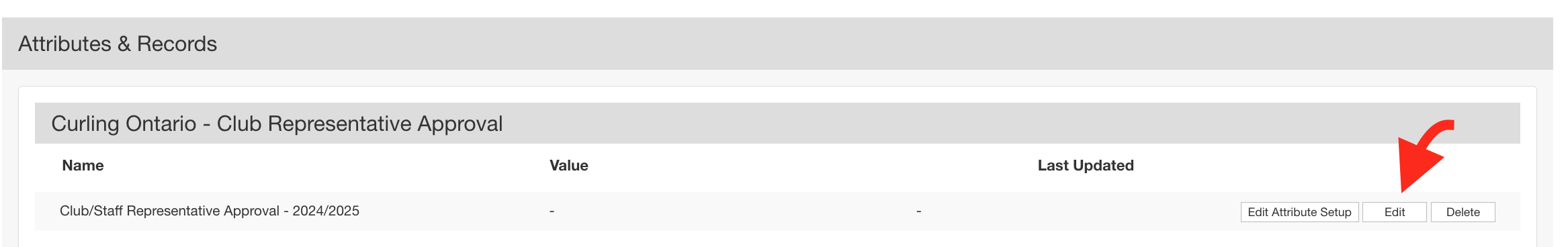 - Click EDIT on the 'club/staff representative approval' option: