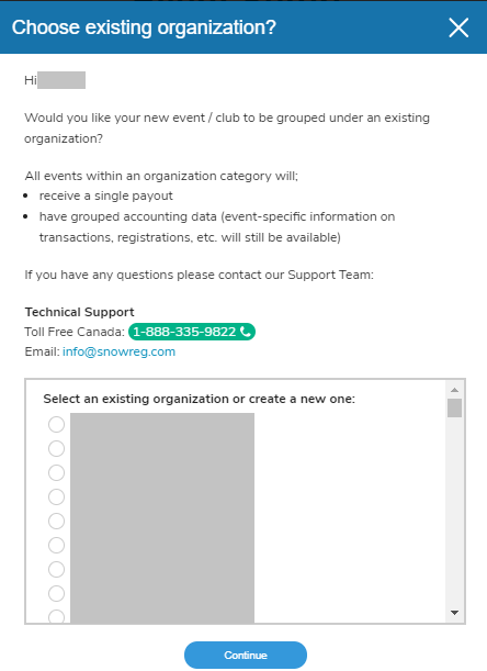 The new reuse existing organization feature enables you to select the organization (and financial account) to which you'd like to link your event/club. If you reuse an existing organization the funds from your club/event will be transferred to this existing account.