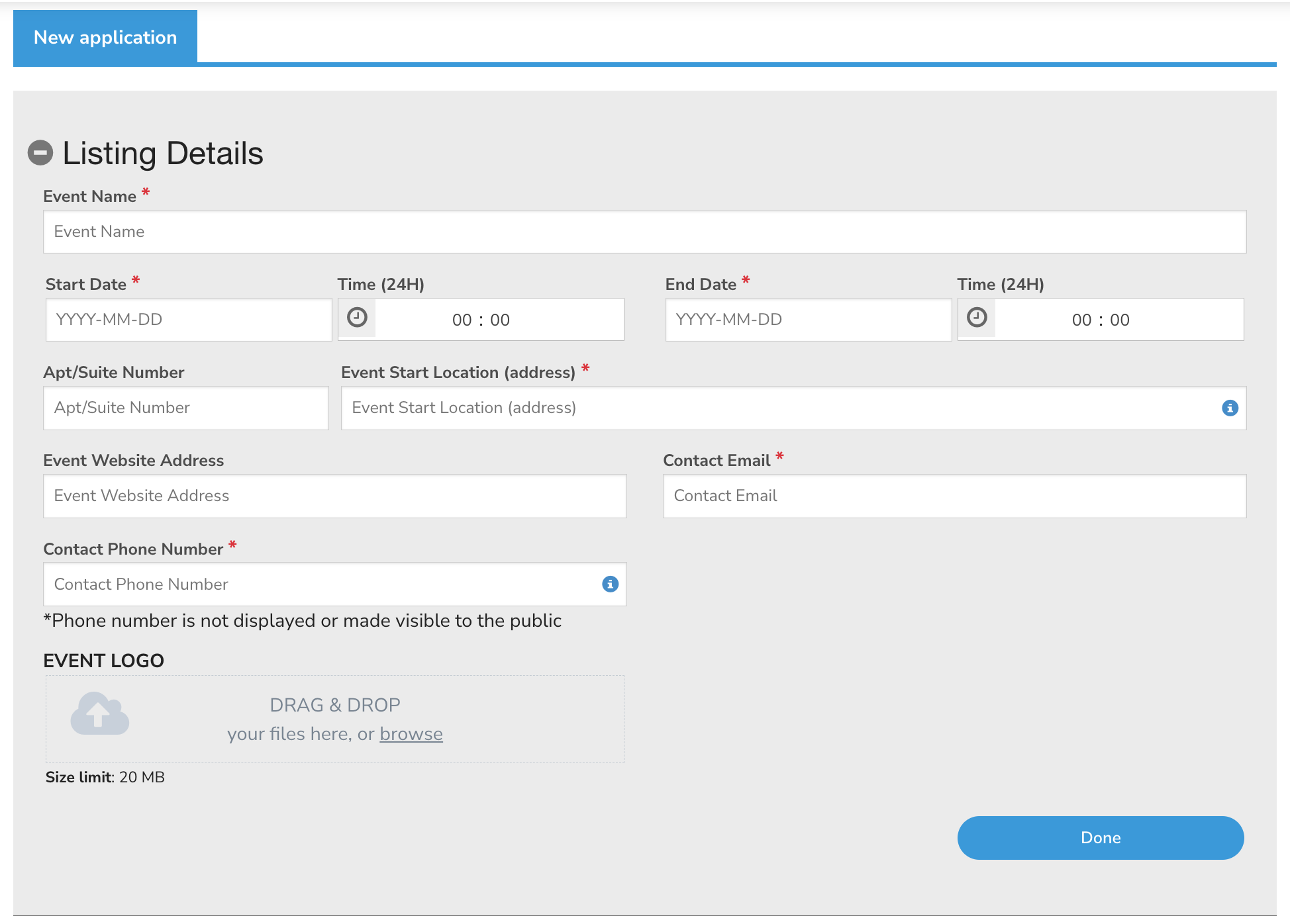 Address: This appears when someone is looking for an event's location (ie: events in Ontario). Some clubs or events do not have an exact address (parks, lakes etc...) or are managed from a private office. If that is your case please enter the closest city or landmark.