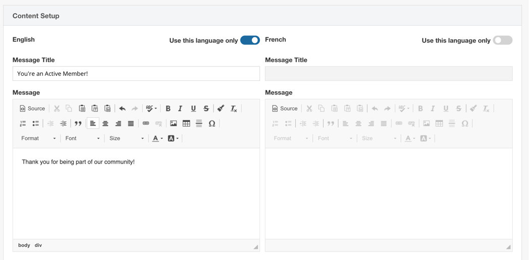 3- Access the Registration Configuration > Profile Widget tab to create and customize your 'Member Banner' (aka Profile Page Message) for ACTIVE membership and/or EXPIRED memberships