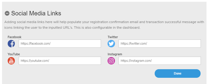 If you have social media you can add your links here so they can be easily accessible, they will show up on your registration page.