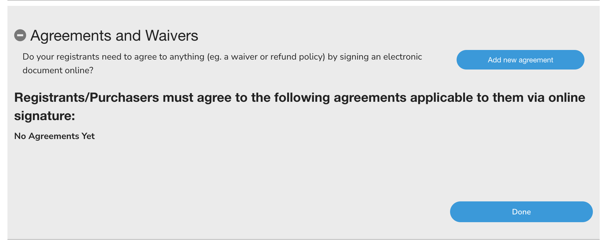 You can add any waiver, agreement, or document you'd like your registrants to sign while registering