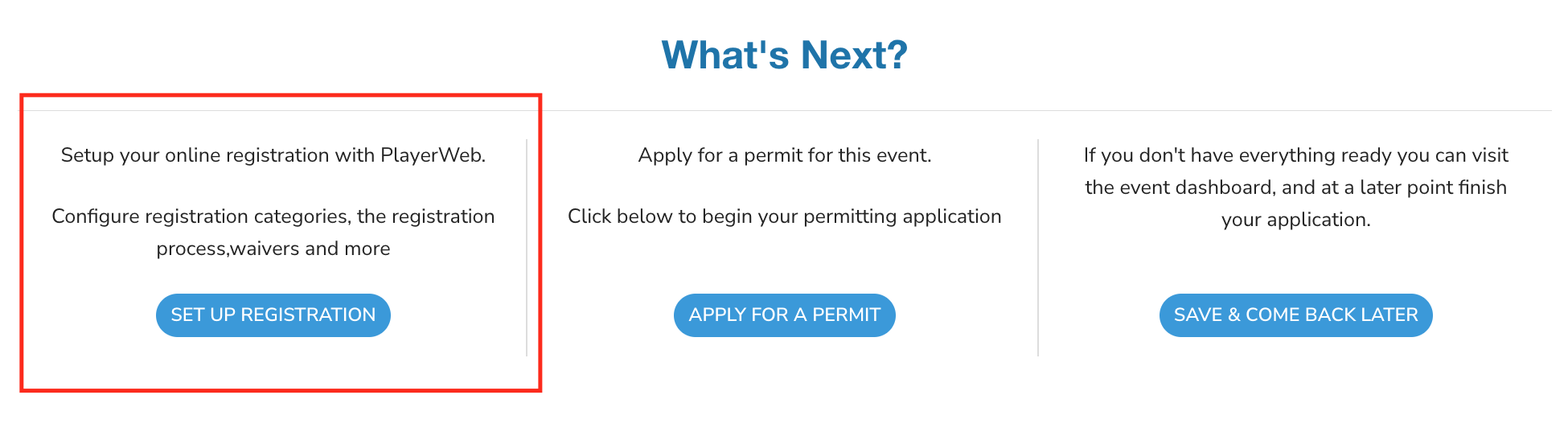 When you return to the club dashboard, you can explore additional configuration tools for your Try Speed Skating event by consulting the following guide: Registration Process Setup: HOW TO SETUP YOUR EVENT, PROGRAM, COMPETITION, ACTIVITY