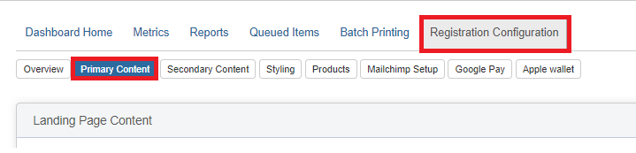 - Under the registration configuration tab select primary content.