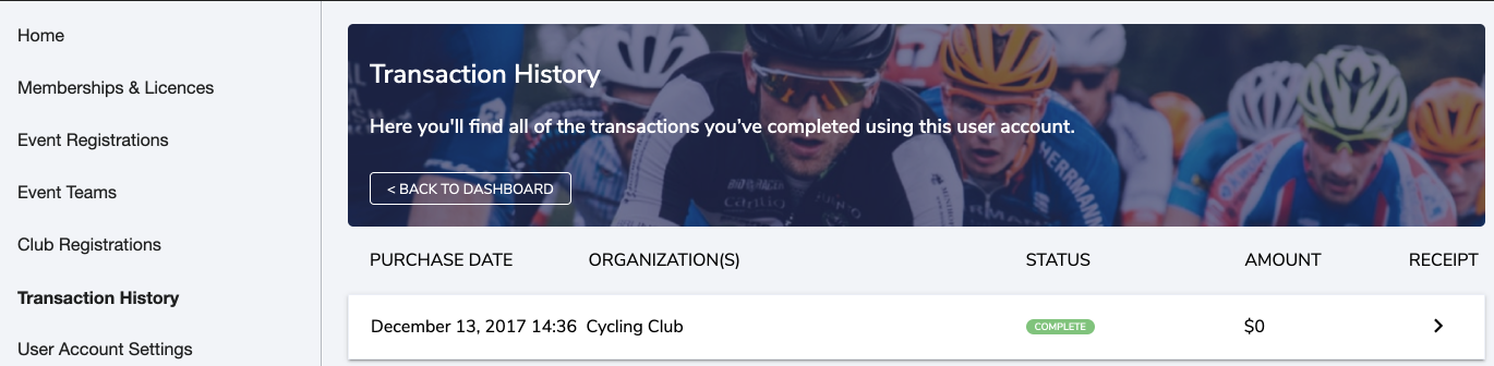 3b. "Receipt" Il s'agit de la facture (cliquez sur la flèche pour afficher la facture) elle affiche vos transactions et inclut les frais et taxes appliquées. Vous pouvez imprimer cette facture si vous le souhaitez. Si vous aves fait un don, cette facture n'est pas valable en tant que reçu fiscal.