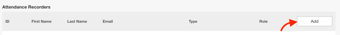 - And from the 'Attendance Recorders' table, click 'ADD' and lookup the new admin name or email address: